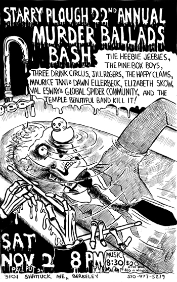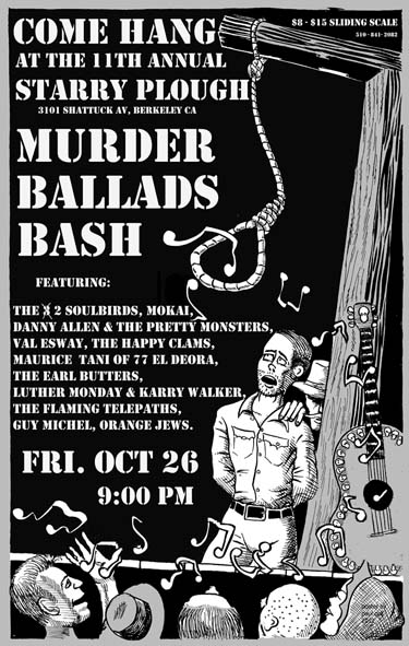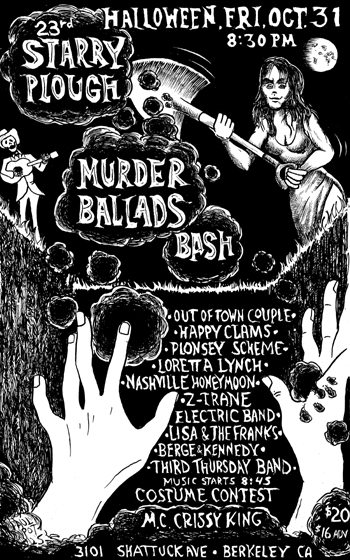 Autumn blows a chill wind up the back of your neck. Perfect time for songs of murder, misery, death, and despair. Get on your scary self and come out this Halloween for a dark revue of 9 local acts of musical mayhem.